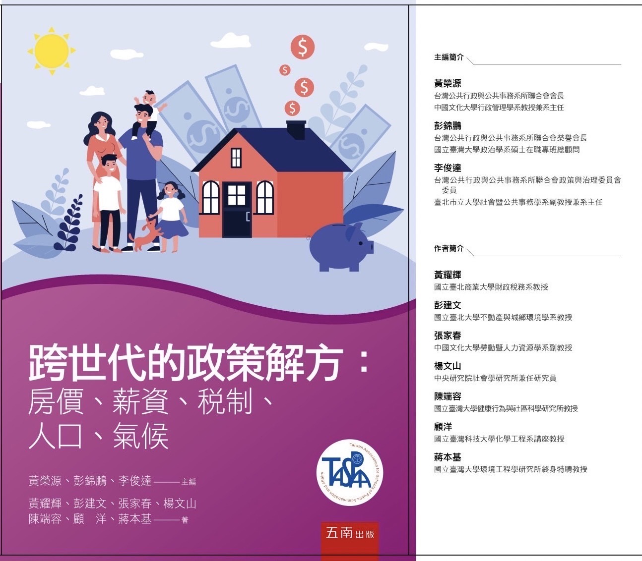 憂心少子化高房價成國安問題 TASPAA邀集專家集思提建言 出版政策解方專書 2022/12/25 憂心少子化高房價成國安問題 TASPAA邀集專家集思提建言 出版政策解方專書 (台北訊)面對台灣出生率不如死亡率、高房價、低薪及減碳等重大國安議題,TASPAA邀集33位專家學者集思廣益,籌編「跨時代的政策解方」專書,針對稅制與貧富差距、居住正義、青年低薪及分配、幼托與婚育、老人健康與長照、淨零排放和永續、氣候變遷與調適等政策提出建言,做為政府施政參考。特別在進入「超高齡社會」後,如何讓民眾有機會「老得慢、病得晚、生命有意義」。 世界銀行2021年各國購買力平價計算的國民所得,台灣排名第11名。雖然灣的各項國政表現都很傑出,但比較明顯的內部劣勢,則是總生育率和出生率低落。台灣也面臨「生不如死」的關鍵議題,甚至有學者提出若不正視少子化情況,達來恐成國安危機。 為此,台灣公共行政與公共事務系所聯合會,集結33位專家學者智慧,歷經8個月的籌編,完成「跨時代的政策解方」白皮書,內容聚焦在房價、薪資、稅制、人口、氣候等,主要後探討內容包括稅制與貧富差距、居住正義、青年低薪及分配、幼托與婚育、老人健康與長照、淨零排放和永續、氣候變遷與調適等政策問題與解方。 台灣公共行政與公共事務系所聯合會(Taiwan Association for Schools of Public Administration and Affairs, TASPAA)會長黃榮源說,在籌辦2022年會時,提議籌編「跨時代的政策解方」,獲榮譽會長彭錦鵬及多人支持投入、歸納出14項台灣當前所面臨的關鍵政策議題。 黃榮源強調,公共行政學界必須從「整合」和「深耕」兩個途徑來調整自己的腳步。TASPAA推出「跨世代的政策解方」專書只是一個起點,期待能匯集更多的資源和力量,尋找民眾安身立命的方法和指南,共同為建立更有韌性、前瞻、永續發展的臺灣盡一份心力。 榮譽會長彭錦鵬說,此書出版後會送到政府部門,做為政策制定和執行的參考。再者,這項工作將會是常態性的工作。另外,這個工作是結合不同專業領域專家學者的意見,是一個跨域整合的型態。最後,白皮書研擬過程完全秉持科學和客觀精神,期許成為國內產官學研在公共政策與政府管理領域的互動交流的正式平台。 今年5月,TASPAA進行專家座談。再請台灣公共行政各大學系所教授,針對這些關鍵議題進行專家評估調查。調查結果依序為:老人健康與長照(99.0%)、少子化(94.1%)、高房價與青年住宅(83.2%)、稅制與貧富差距(79.2%)、淨零排放(78.2%)、幼托與婚育(76.2%)、氣候變遷下的基礎建設調適(75.2%)、青年低薪(73.3%)。 為此,書本內容書寫專家學者針對重大問題,會診把脈,提出良方。第一章針對稅制與貧富差距,稅制改革,提出建議如下:稅制改革首重提高租稅負擔率、所得稅方面讓小者做大、消費稅重於降低累退性、財產稅應落實居住正義、遺產稅要有國際化格局與視野。 第二章針對高房價和青年住宅。建議包括兩大面向:第一,健全住宅市場以減少不動產投資誘因和投機炒作。第二,掌握不同族群住宅需求,以正確評估所需資源數量與補助方式。具體建議包括:更精準掌握青年人住宅需求、掌握不同政策工具優缺點,以配套互補方式解決青年人居住問題。 第三章針對青年低薪問題,提出建議對策,包括:增加產值對勞動分配的份額、弭平教育學用落差、建立符合未來工作的國家職務工作典章及工作資歷證照制度、建立銜接國際的資歷認證及證照制度、增修集體勞動法以建置各級勞資協商機制、檢討現有社會保障制度以形成符合青年職涯的規劃和職能提升。 第四章針對台灣女性生與不生的抉擇。建議包括:協助青年成家、普及公共托育、建立高齡友善環境。為達到這三大目標,本章提出6項推動措施、以及19項具體做法。 第五章針對人口高齡化現象,在進入「超高齡社會」後,如何有機會「老得慢、病得晚、生命有意義」,提出建議涵蓋3個基本理念:健康安全、尊嚴自主、新高齡教育。同時,包括4個政策目標:增進高齡者健康與保障自主、提升高齡者非親屬的社會連結、建構多元形式的高齡友善安全環境、以及反年齡歧視的新高齡教育。 第六章針對碳排放淨零。有關2050年前達到淨零碳排放的目標,提出各項建議,包括:溫室氣體減量目標、溫室氣體查核機制、氣候金融機制,氣候相關科技機制。 第七章,針對全球氣候變遷所產生的氣候暖化危機,建議政府政策必須從基礎建設的各面向,提出具體措施加以因應。政策作為包括:供水及水利系統必須強化供需調適能力、系統性評估和提升制度靱性、推動供水及水利系統的應變與復原能力、建構永續安全的供水系統。還有通訊系統、交通系統方面,如提升衝擊的耐受力、精進災防預警應變能力、增進整體調適力、提高工程回復力。能源供給系統則需強化調適能源管理機制、建立多元自主低碳永續能源供應系統、建構安全穩定的企業與住商能源、電力供應系統。 中央社、聯合、中時、經濟日報、工商、華視、威傳媒、今日報、YAHOO、YAM、PCHOME等十餘家媒體報導,連結如下: 中央通訊社 YAHOO新聞 聯合新聞網 華視 中時新聞網 工商時報 經濟日報 威傳媒 蕃薯藤 OwlNews match生活網 PChome 今日報 Previous Article 上一篇 【訊息代發】數位治理研究中心徵聘專員 公告 Next Article 下一篇 《中國行政評論》第29卷第1期 徵稿
