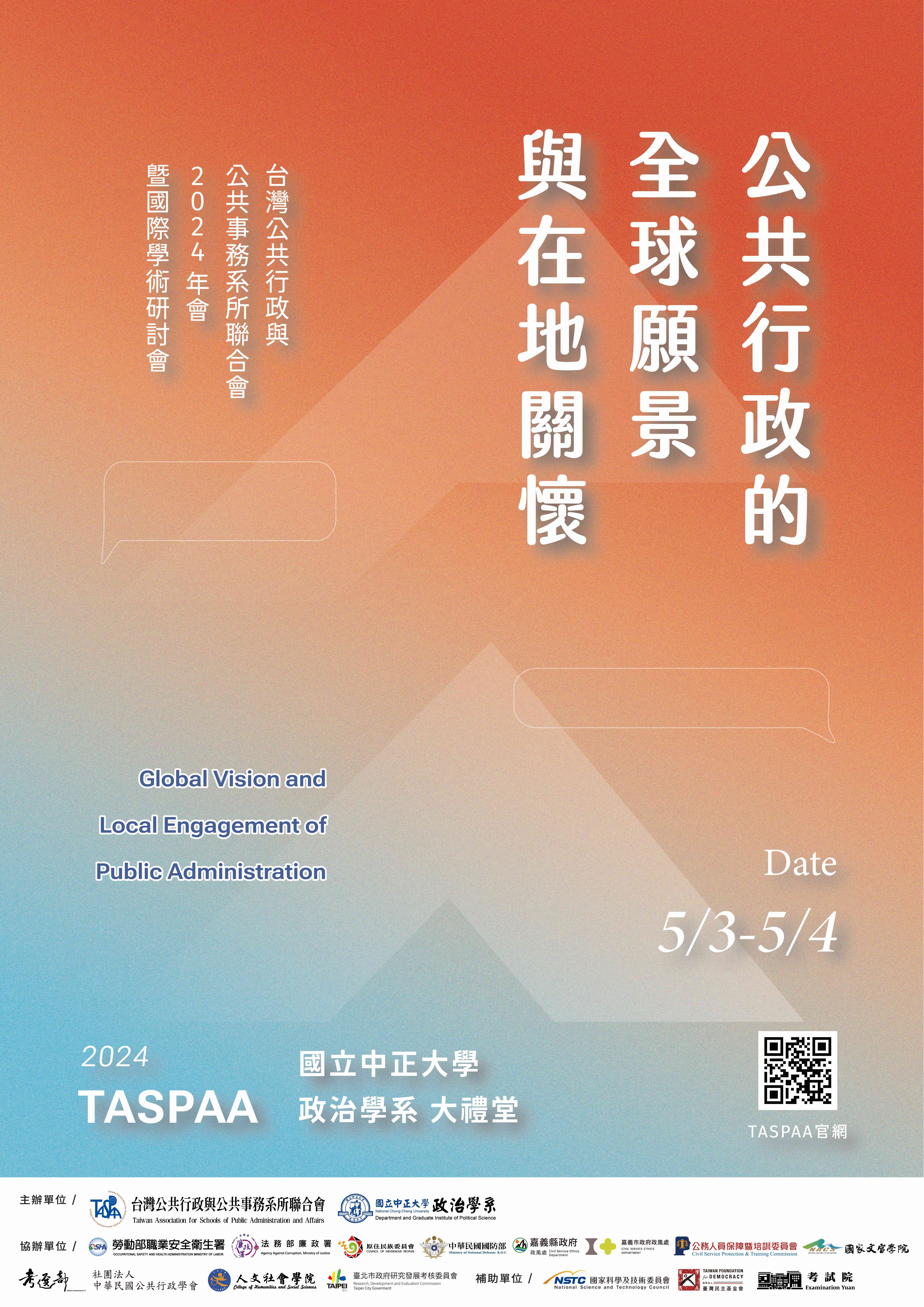 【2024TASPAA資訊】現場報名&參加時數證明資訊 2024/04/12 2024年第十九屆 TASPAA年會暨國際學術研討會 現場報名資訊 歡迎參與2024年台灣公共行政與公共事務系所聯合會年會暨國際學術研討會,目前線上報名已截止,但仍開放現場報名,請直接於活動當日至報到櫃檯報名即可。 如有參加證明需求者,請於參加當日於報到櫃檯填寫表單,本會將於會後寄發電子證明至您的信箱,逾期不候(僅核發參加日,恕無法計算時數,敬請見諒)。 最新議程資訊詳如年會資訊專區(連結:https://taspaa.org/annual_meeting.aspx)。 Previous Article 上一篇 【訊息代發】國立臺灣大學社會科學院徵聘專案教師 Next Article 下一篇 【訊息代發】2024第三屆PACC飛鳶盃公共事務個案競賽報名開始
